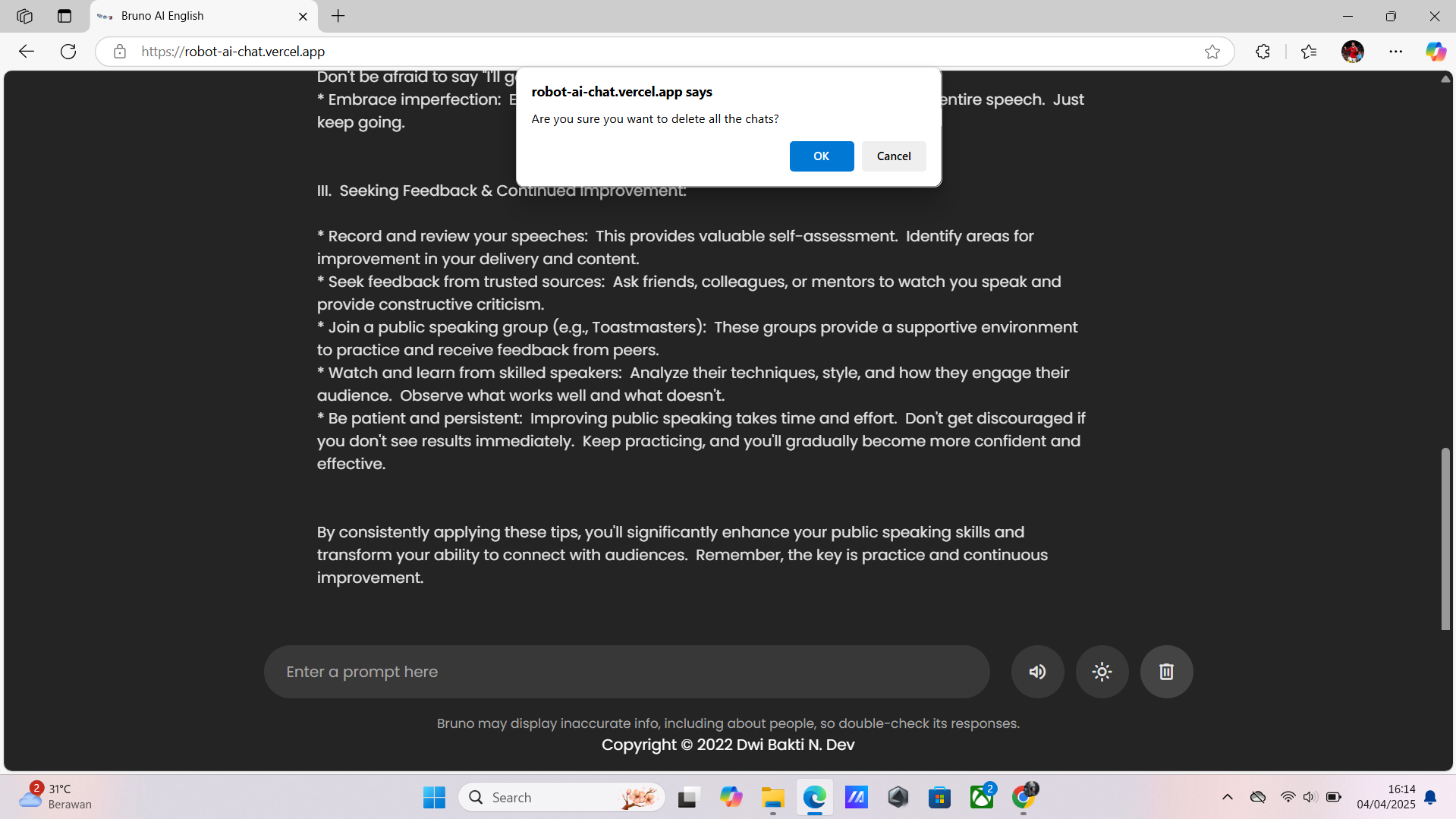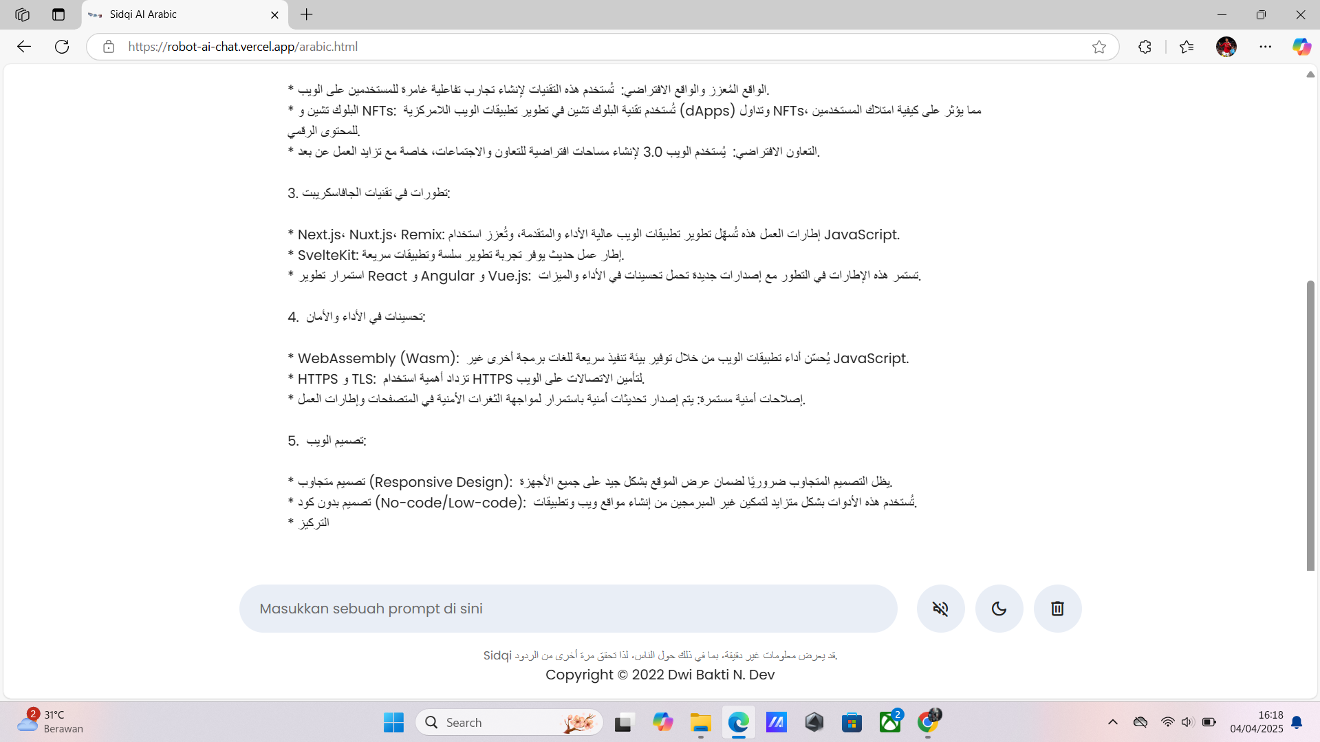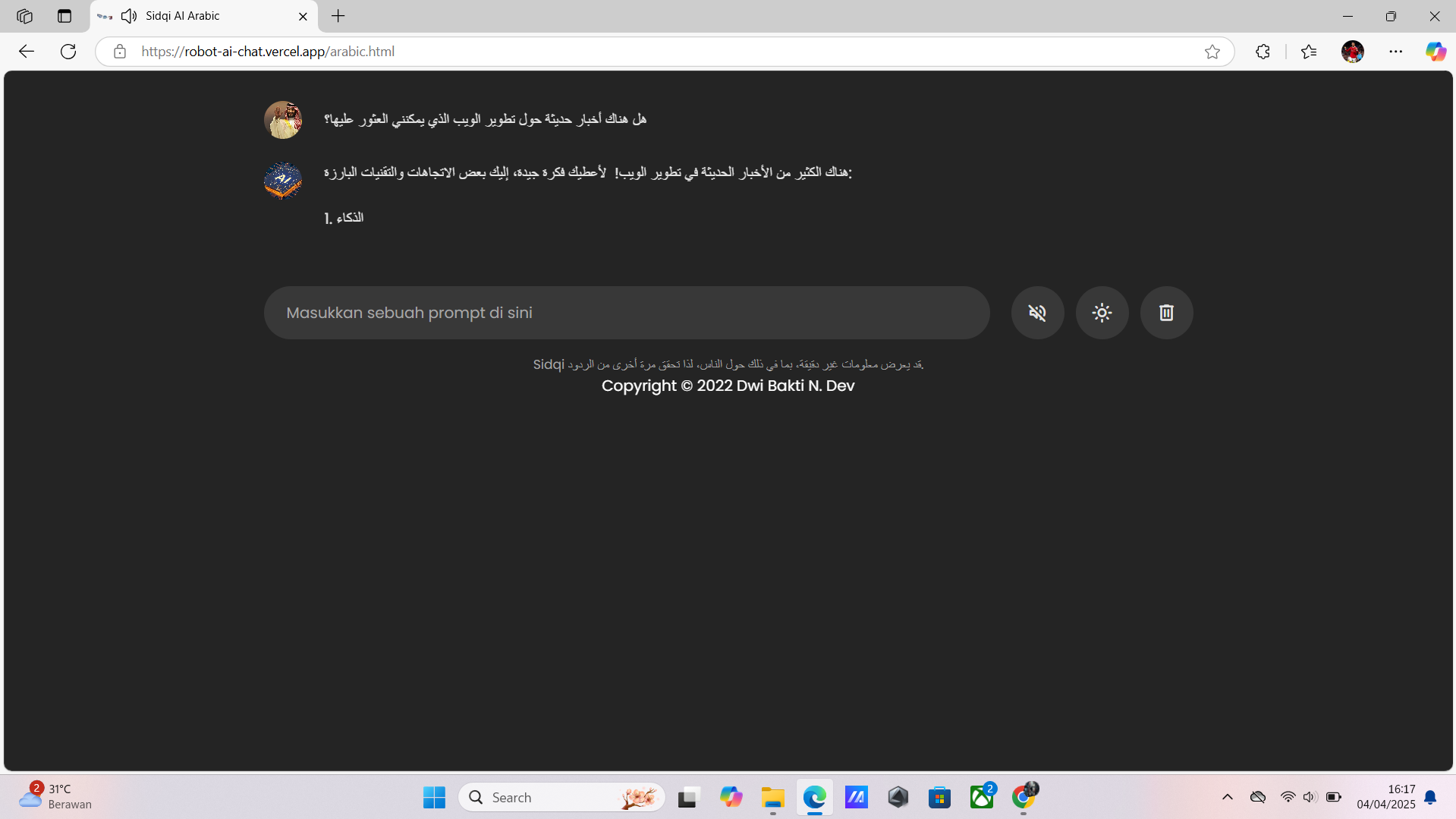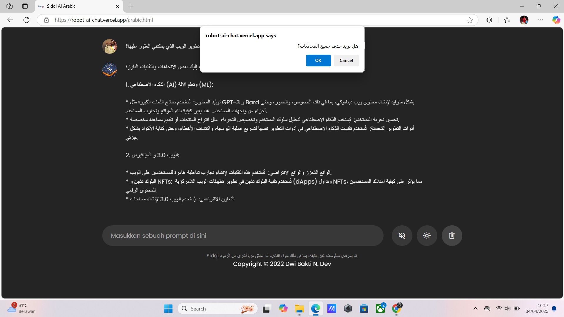 2 ) Link : https://robot-ai-chat.vercel.app