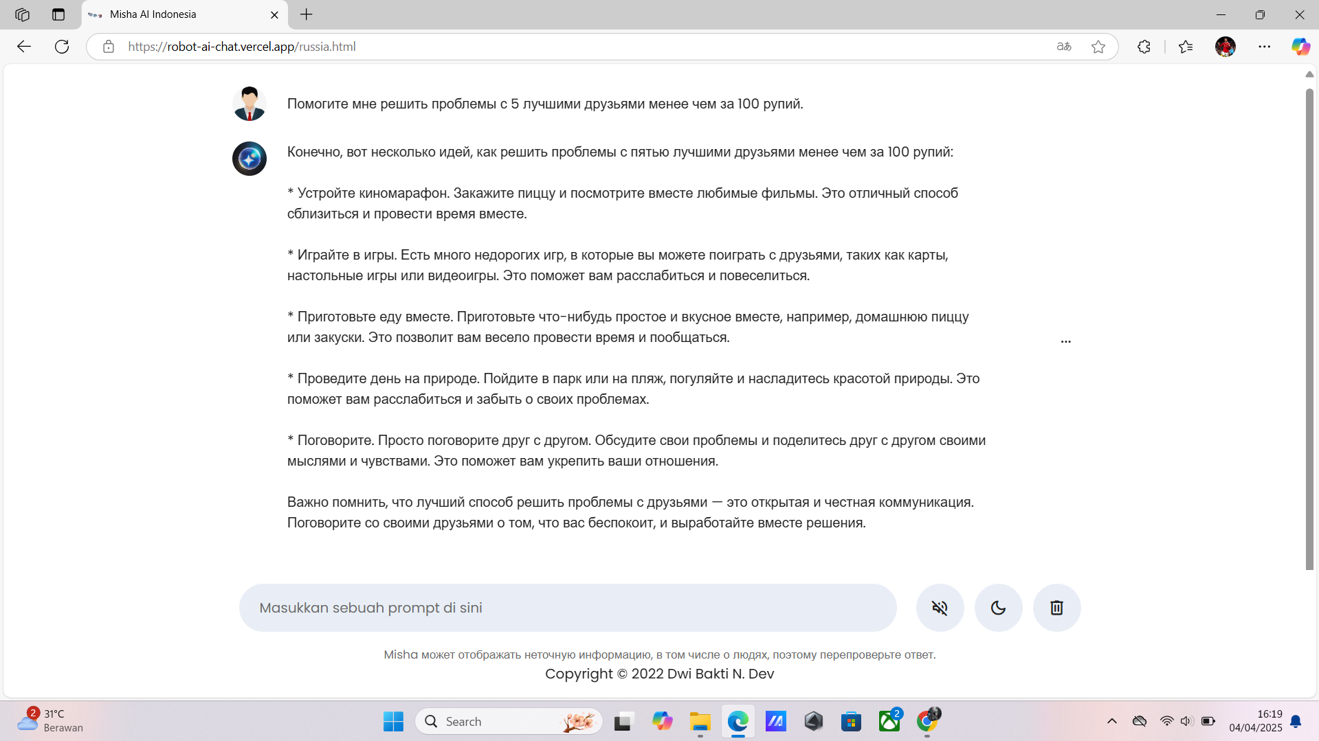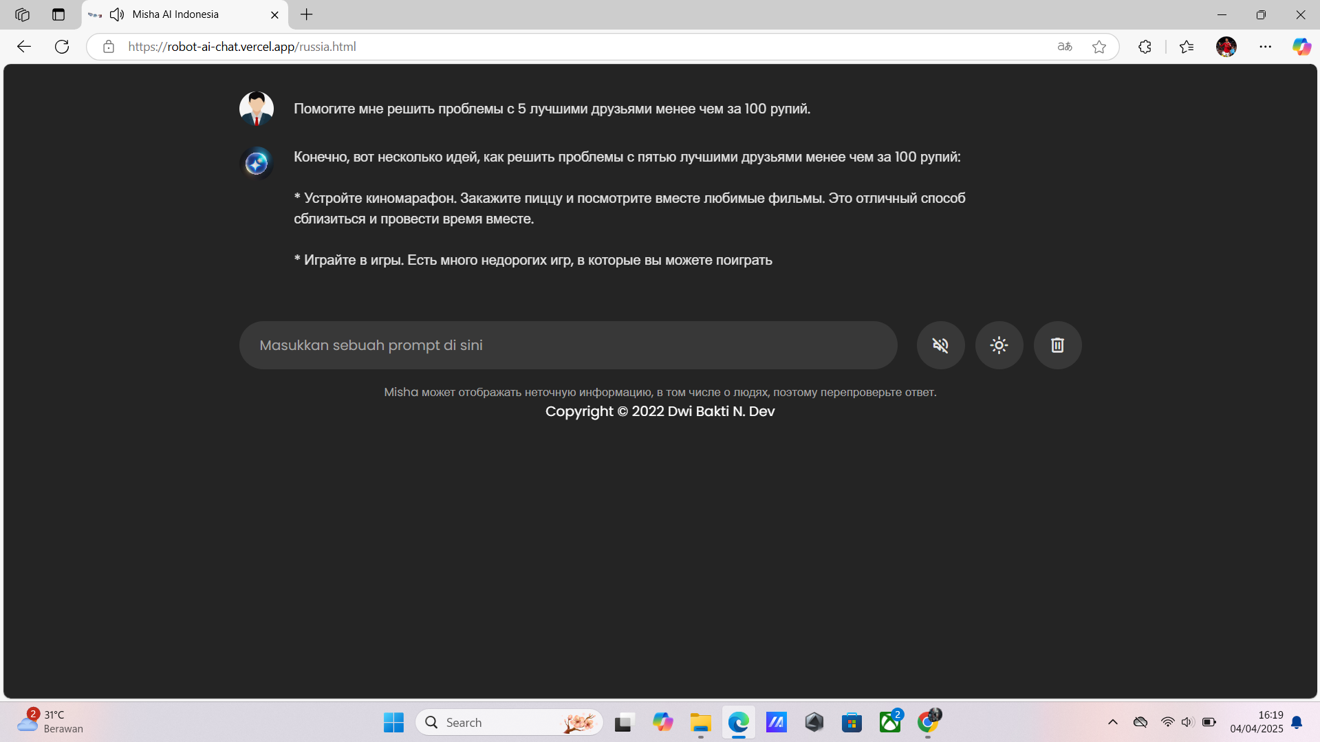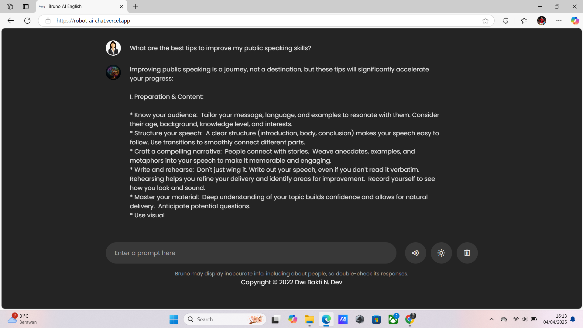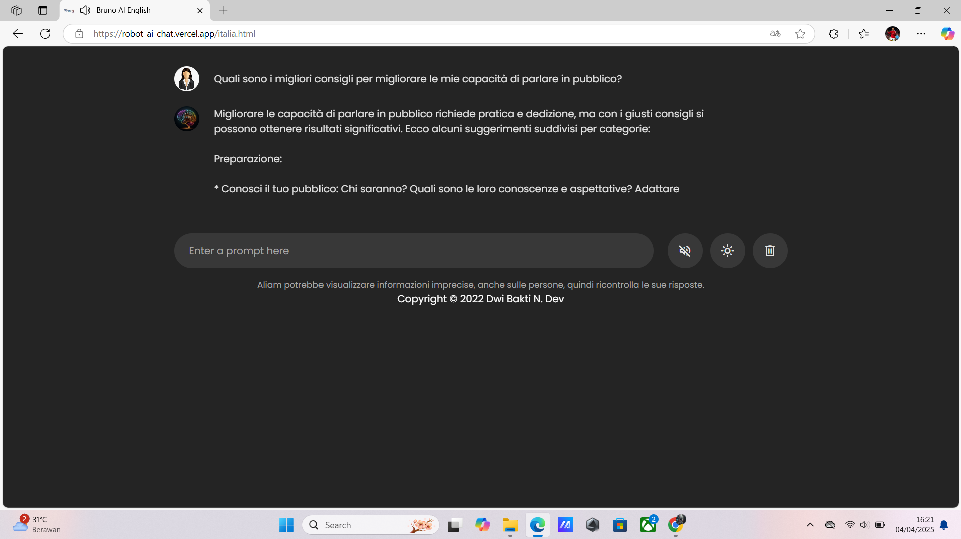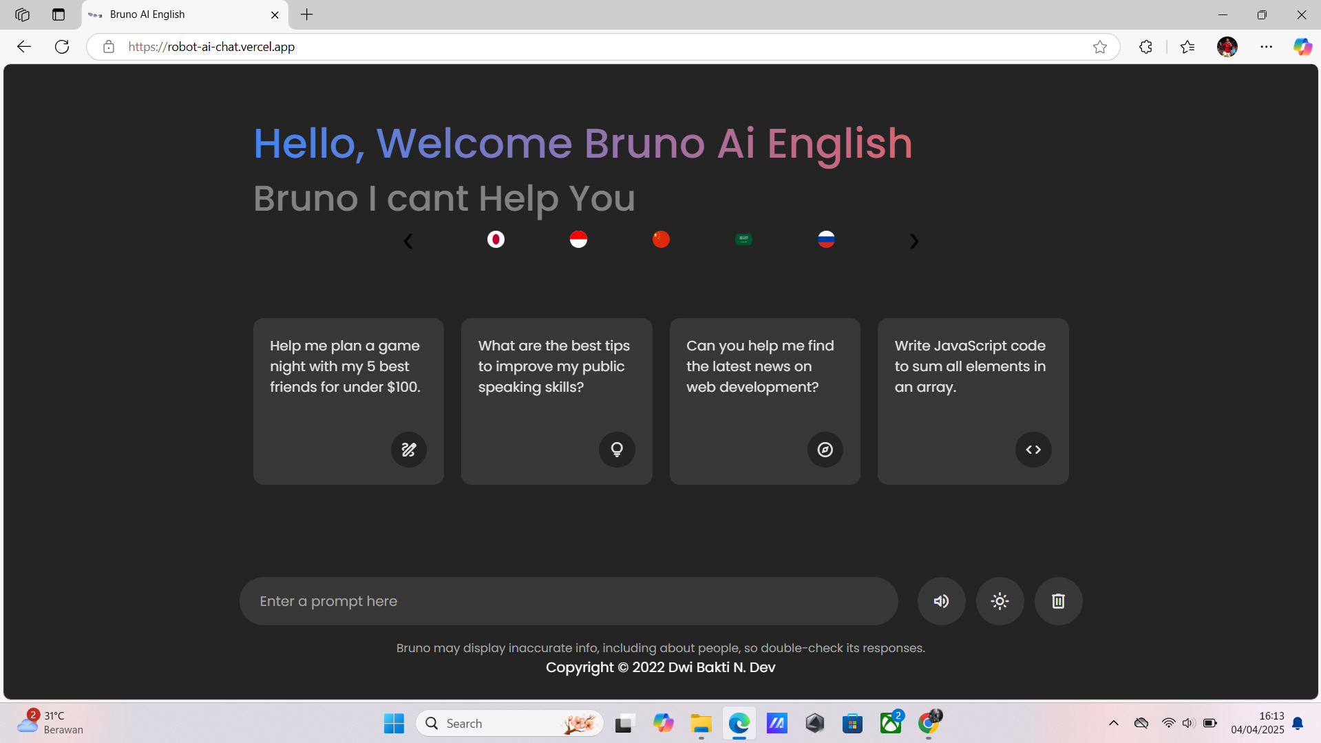 2 ) Link : https://robot-ai-chat.vercel.app